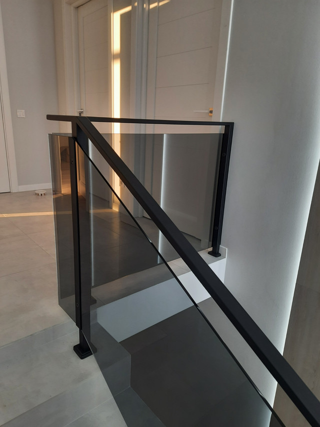 Виготовлення Огорожа, поруччя, перила з чорного металу, наповненого склом.